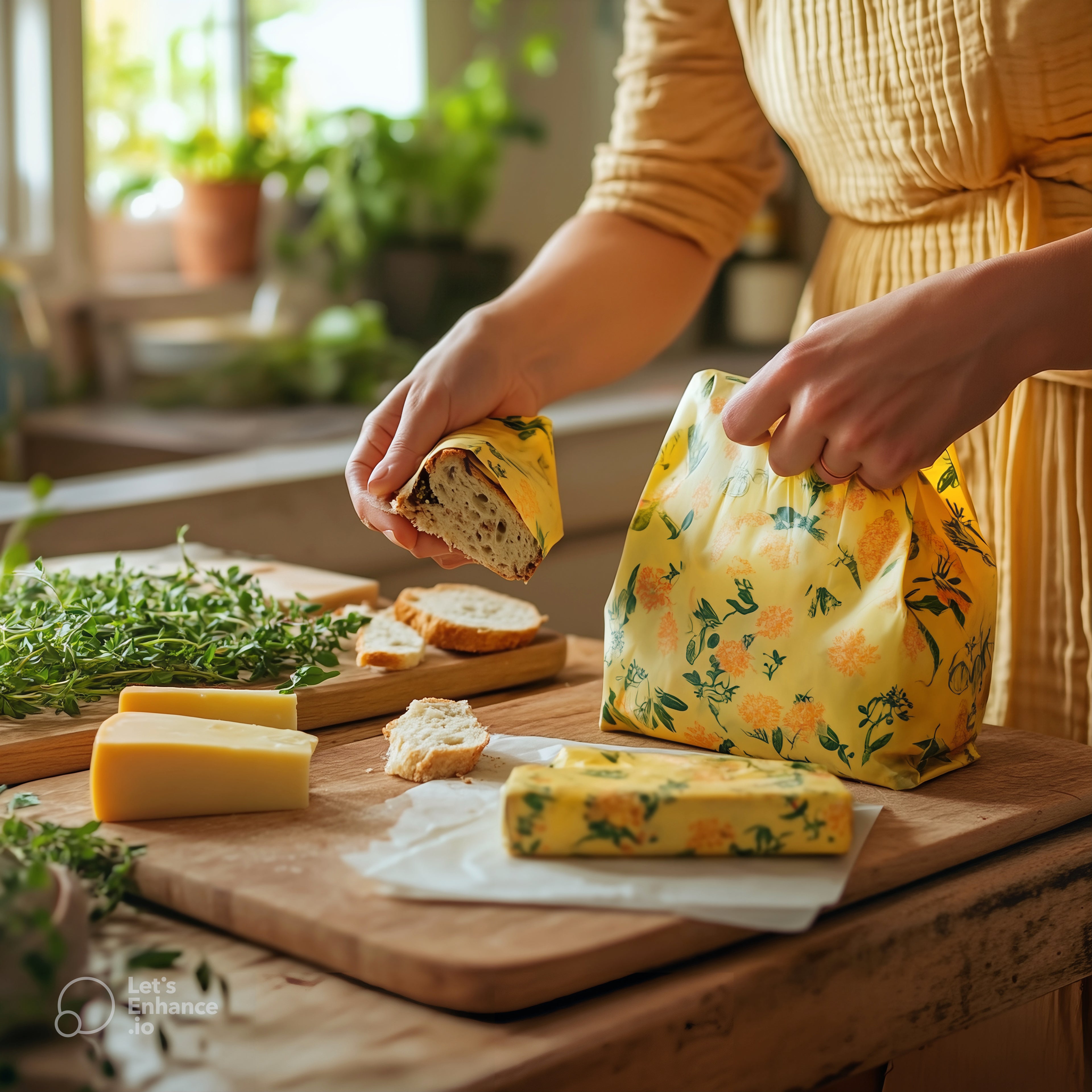 Even opwarmen met je handen en de doek vormt zich soepel om brood, kaas of een halve avocado. Zo wordt duurzaam bewaren een gewoonte die heel natuurlijk aanvoelt.