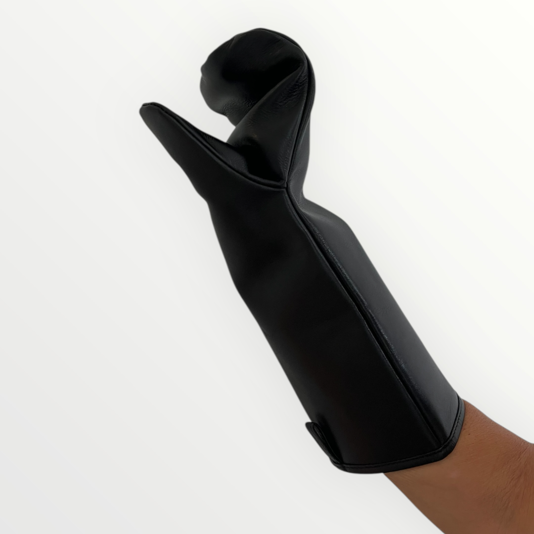 Deze leren ovenhandschoen is handgemaakt van hoogwaardig, hittebestendig rundleer dat niet alleen je handen beschermt, maar er ook prachtig uitziet in elke keuken of bij de BBQ.